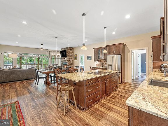 Welcome to the Tree House, recently completed in 2024, over 6,000 sqft with 5 beds and 5,5 baths, all with lake views, on the Public side of Lake Anna. The main level has two bedrooms, each with a full bathroom, a gourmet cook's kitchen with island seating and stainless appliances, wet bar, dining area, and great room with gas fireplace, guest bath, and laundry/mud room with shoe/coat cabinetry. Upstairs, there are 2 additional bedrooms, each with a private bath, and a huge second great room with a vaulted ceiling and a catwalk above! Both the main and upper levels have full-width decking accessed from the bedrooms and great rooms. The 5th bedroom/bathroom is in the basement alongside a wet bar and an extensive game/bonus room. Outside is a lower-level patio with a fire pit and outdoor kitchen/BBQ with fridge and grill, which in turn leads to the boat slip and sundeck. A third-level deck could be accessed from the catwalk. The property has been designed to mesh with the environment, with native plants fronting the house and natural vegetation in the rear. The house fronts open land and is non-HOA and is located within a few minutes of The Cove and Tim's restaurants and only a short drive to all of the lake's other amenities, including marinas, wineries, breweries, restaurants, and Food Lion.