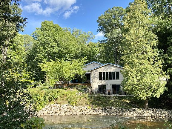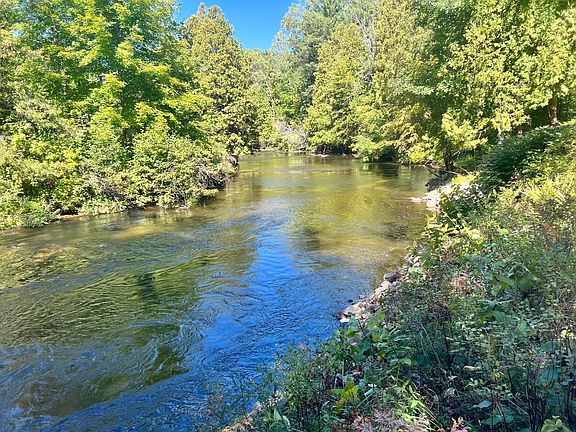 PANORAMIC VIEWS OF THE WILD & SCENIC PERE MARQUETTE RIVER-Big South Branch. Premier Trout stream w/ 248 ft walk-in frontage. Great fish habitat w/gravel bottom, overhanging branches & holes. Plenty of public land nearby for hunting. Home boasts approx 2400 sq ft w/3 bed/2 baths on the main floor, wood-burning fireplace in living room. Lower level walk-out exits to the patio, can be used as a family room or 4th bedroom. Awesome views/sounds from home, deck & patio overlooking both upstream & down. Spawning areas right out front. Famous for Steelhead, Salmon & Trout. 2-car garage w/heated workshop. New well 2018 & new septic 2021. Property is surrounded by woods & creek behind the house & garage. Wild & Scenic River setbacks do not allow building this close to the river. Just steps away!