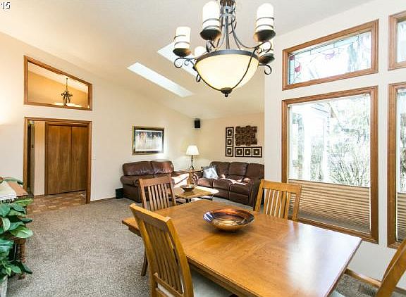 Amazing one level in sought after neighborhood! Home welcomes you with lots of windows,skylights and vaults. Formal living and dining+family rm w/cozy woodstove adjoining big kitchen w/granite,tile,pantry&breakfast bar.Master w/bath&walk-in closet. 3 car attached garage+20X16(aprox)detached,drive through garage/shop! Big RV parking area! Lovely&level .41AC lot. Fenced back w/huge partially covered patio,storage shed&sprinkler system!