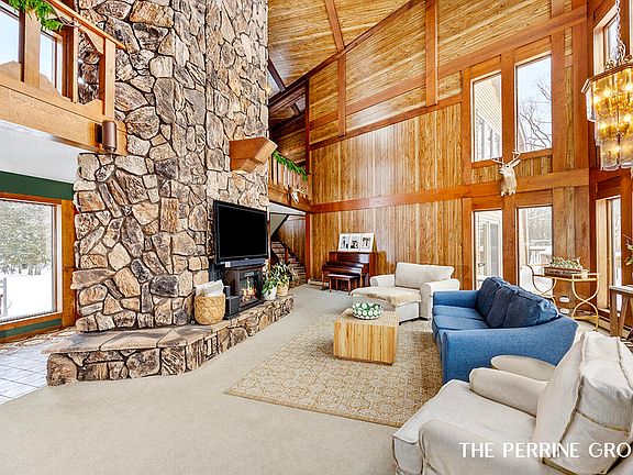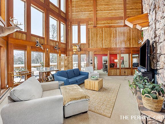 This custom built beauty boasts floor to ceiling windows, a grand stone fireplace, gorgeous lodge details & much much more. Offering a main floor primary suite, formal dining and living spaces, cozy family room adjacent to the kitchen and casual dining room. This home has 6 bedrooms, 5 bathrooms, a 3 stall attached garage, expansive new deck, lower level ready to be finished for a possible 7th bedroom, family room and entertaining space. Property has a beautiful private pond w/ dock, creek w/ adorable wood bridge. Duck & Deer Hunting, Wedding Venue, Vacation rental or primary residence. the possibilities are endless with this one of a kind property. Book your private showing today!