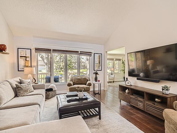 Welcome to the “Enchanting Londonderry Townhome” in the heart of Edina, nestled along Nine Mile Creek. Quiet and private, with soaring 16 ft vaulted ceilings and an abundance of natural light. Featuring 2 Bedrooms (upper level primary is a combination of original 2 Bedrooms) creating an majestic primary bedroom and ensuite with walk-in closet. Primary features sitting area, second closet and skylight.` The main level features floor to ceiling brick fireplace, clerestory windows, engineered hardwood floors, den/office (with sliding glass doors to deck), raised dining room and “gourmet chef’s” eat-in kitchen. The lower level features media/entertainment center along with 2nd bedroom, ¾ bath and second fireplace. Large storage space & laundry complete the lower level. Home has been completely renovated by owner/ professional decorator. Entertain on your private deck or visit the abundance of restaurants & shopping nearby. You will not want to miss out on your new place to call home!