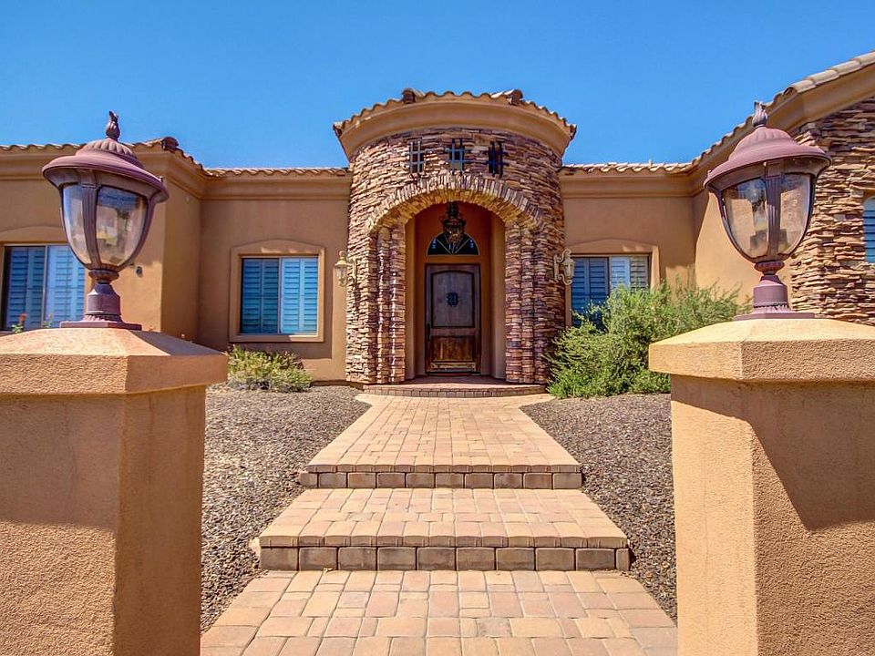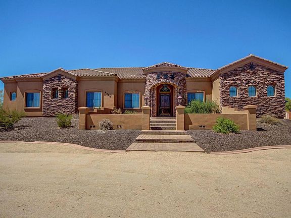 Gorgeous 4 Bedroom+Den Home on an Acre Lot in Cave Creek w/ Paved roads to get you there! Warm wall tones and neutral Travertine Tile throughout. Custom Kitchen is complete w/ Breakfast Bar, High Grade Granite Counter tops, Center Island, a plethora of Custom Alder Cabinets and Stainless Steel Appliances. Great room has Stone Fireplace and Custom bar with soaring 12' Ceilings. Large Master Suite has plush carpet w/ private exit to backyard. Full spa like bathroom with double undermount sinks, granite vanity and separate soaking tub+travertine shower. Spacious walk in closet! Plantation shutters+ 9'Custom Solid Wood Alder Doors throughout. Huge backyard features a huge covered patio w/pavers and ceiling fans. It is a blank canvas awaiting your design. Complete desert landscape transformation with exotic cactus from all over the world, mature desert trees. Plenty of room for RVs, boats, trailers, horses, and more.