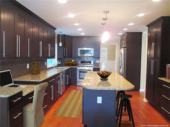 Price Reduced for quick sale!! Motivated Seller! Don't miss this updated open floor plan w/hardwood floors, window seating, brick fp, exposed beams, built in bookcases & French doors to deck. Beautifully renovated kitchen w/ granite counter tops, island, breakfast bar, ss appliances & separate breakfast rm w/amble cabinets for storage. Separate Formal Dining rm w/hardwood floors & lots of natural light. Large laundry rm on main. Spacious master & secondary rooms. Plus finished room in basement & private fenced in back yard. See prvt remarks