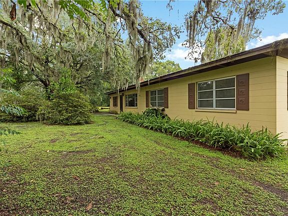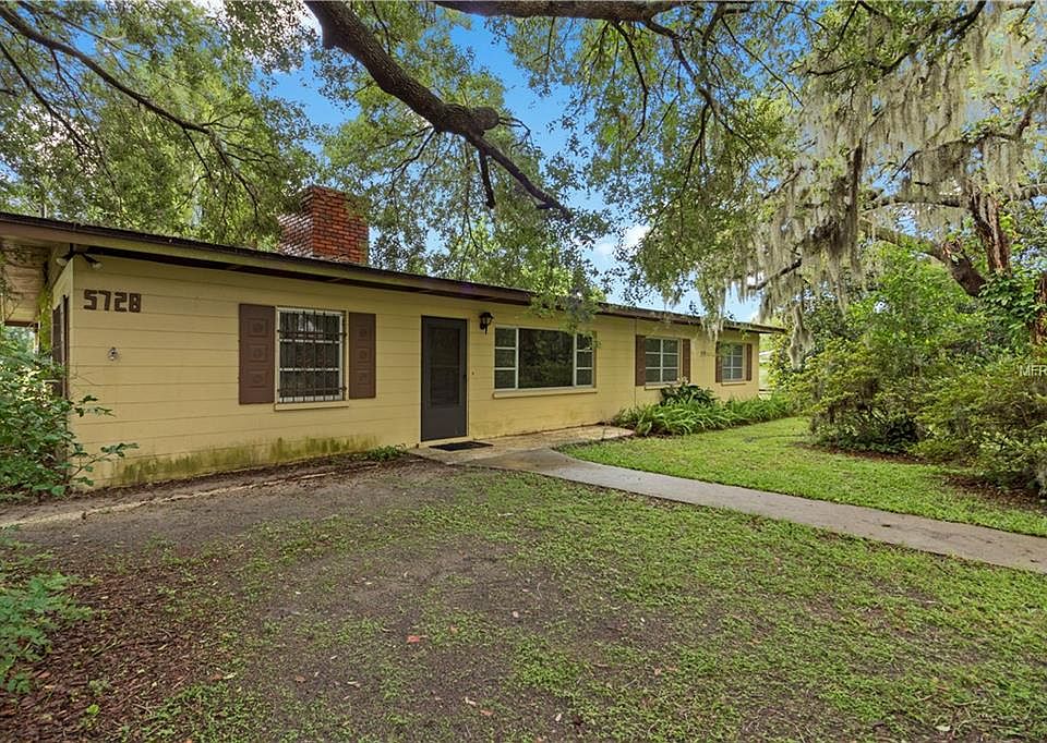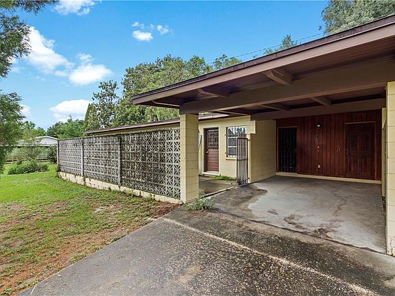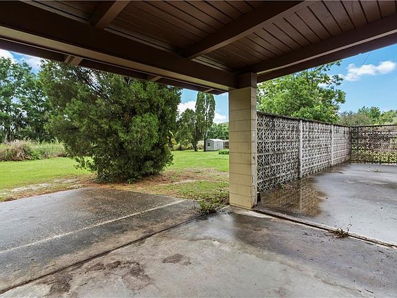 The story behind this hidden gem is as solid as its poured-concrete walls. Built to naval officers housing specifications by the owners' late father, the over-sized wooded property has been in the same family for generations. A little TLC will transform this house into an ideal starter home, with plenty of outdoor space to romp. The floorplan is efficient yet perfectly accommodating. Architectural touches include a carved wooden front door; floor-to-ceiling brick fireplace and large picture window in the great room; vaulted knotty pine ceilings throughout; and knotty pine-paneled bar complete with a wet bar and built-in shelving (#mancave?). The natural appearance of the mature landscaping - complete with two hand water pumps on the property - provides plenty of shade and offers lovely serene views from inside. A fabulous retro-style patio exterior storage off the carport is just begging for an audience, and two storage sheds will hold all your lawn tools and more. Tucked into a quiet neighborhood in south Lakeland, with very few neighbors, your new home is ideally situated, and just minutes to Polk Parkway and other main transportation arteries. And priced to sell!