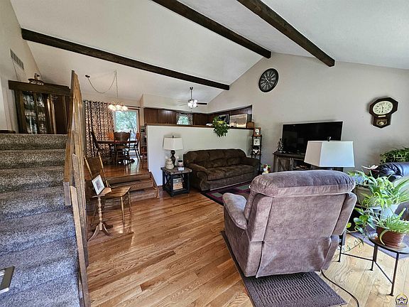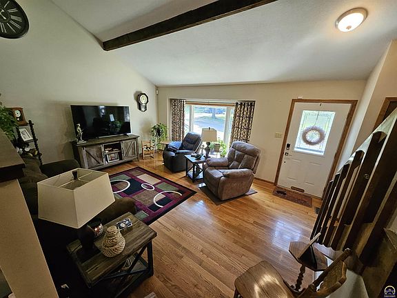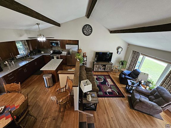 Beautifully updated & well-maintained 3-bed, 2-bath home in SW Topeka! Features an updated kitchen w/island, hard counter tops & stainless appliances, refreshed bathrooms, hardwoods, spacious family room w/fireplace in the walkout basement, newer roof & gutter guards (2022), updated furnace (2019) & AC (2023), Trex deck, covered patio & shaded fenced backyard. Just move in and enjoy!