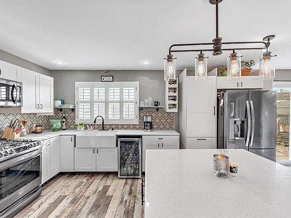 Updated tri-level in desirable Brookview Subdivision. This home welcomes you with an open concept on the main floor featuring the updated kitchen and all new hardwood flooring throughout. Plenty of natural light brightens up this space and is enhanced by all new fixtures, timeless kitchen cabinets with soft close feature, and farmers sink. Gather at the island with quartz countertop and enjoy the new stainless steel appliance package including gas range, refrigerator, microwave, and additional separate beverage cooler. Entertain outside in the ample backyard, patio or raised deck; corner lot, with large shed in the backyard; relax in the lower level recreation room with quick access to a .75 bath, flex room and 2 car garage with new wood style garage door. Upstairs you will find 3 generous sized bedrooms; the principal bedroom features double closet, custom interior plantation window shutters, custom main bath; AHS Home Warranty included.