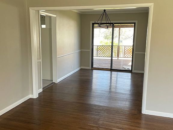 This home has all kinds of new! Large living room with wood floors, leads to dining room with new chandelier and also has a sliding door to large covered patio/wood deck. Updated kitchen with cute little breakfast nook. On the other side of the dining room is a flex room that would be a great office or hobby room as this room has an additional door to another hallway where bathroom and other bedrooms are located. Large bathroom with small nook for storage, etc. Washer and dryer are in the attached 1-car garage - dryer has a 220 electric outlet. Pricing and availability are subject to change. Square footage is approximate. Refrigerator and microwave are included, but non-warranted.