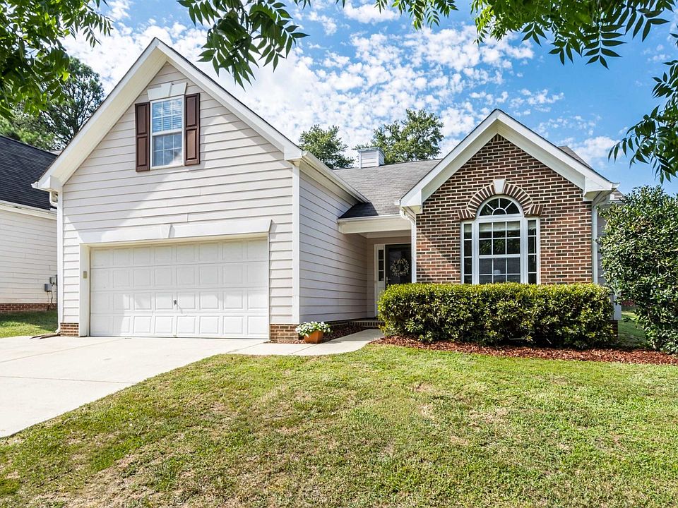 Lovely Ranch with cathedral ceilings and new carpet in popular Riverside! Upgrades include laminate hardwoods in the large Family Room with gas log fireplace and new flooring in the bedrooms and Bonus room upstairs. The wide covered patio overlooks a fenced backyard and inside are large windows and a bright Kitchen and Breakfast area. The spacious main floor Owners Suite has a sitting room and private doors to the patio. Brick and fiber cement siding, recent HVAC, and oversized double garage with work bench, too. Active community with pool, tennis, playground, sidewalks and Google Fiber. Walking distance to schools, the Neuse River Greenway Trail, and the WRAL Soccer Park and easy access to shopping, restaurants, I-540 and major roadways.