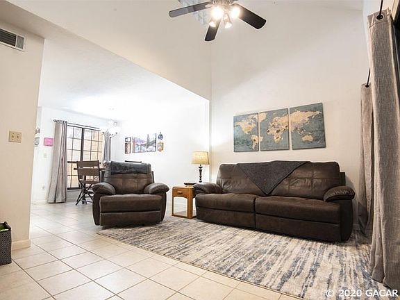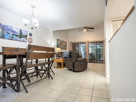 Well maintained nice 2BED/2BATH townhome with a spacious floor plan in popular Rockwood Villas! The front courtyard is beautifully landscaped and welcomes you in. The layout features a spacious main-floor bedroom and bathroom and Upstairs is an owners suite with private attached bathroom and double closet. The suite features an extra bonus room that could be used as an office, nursery, or huge walk-in closet! Newer luxury vinyl plank in both bedrooms. Updated kitchen overlooks dining area and spacious living room. Sliding glass doors open up to a nice screened-in porch with view of green spaces. The community has a pool, tennis courts, and plenty of parking. Located on a direct bus route to UF classes.