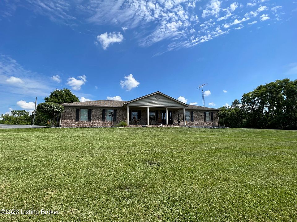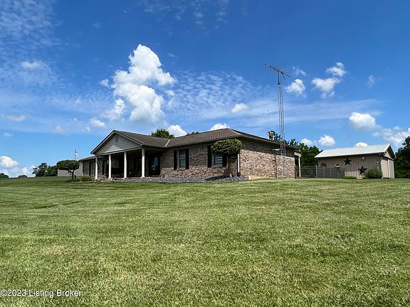 Welcome to your own private paradise in the country! This beautiful brick ranch sits on approx. 5 secluded acres with easy access to I-71 less than 5 miles away. The main floor features the living room, 2 bedrooms, 2 full bathrooms, kitchen, dining room, and laundry room. The updated kitchen is a dream with 2 ovens, ample cabinets, and large pantry. Full sized and separate stainless-steel refrigerator and freezer. The dining room and primary suite have new french doors leading to the covered patio and fenced back yard. The primary bathroom has a separate shower and jacuzzi tub. The finished basement has 2 rooms being used as bedrooms, as well as, a mini bar, dining area, sitting room with surround sound, gaming area, and completed with a door leading to the oversized 2 car garage. This backyard is perfect for entertaining and relaxing. The heated in-ground pool is typically opened and closed between April and October every year. 18x18 gazebo with fan overlooking the pool. 20x20 pool house with electric and concrete floors holds the pool equipment and is already roughed out for a bathroom. There is also a fire pit with rotating grill top perfect for summer nights. The 40x60 pole barn has 200 amp service with concrete floor and 20x55 addition with 14x14 doors which is large enough to store your RV. Enjoy luxurious amenities such as a whole home vacuum system and back up generator, geothermal heating, and heated in-ground pool. Geothermal heating system helps keep energy cost low all year. Call for your private showing of this gem today.