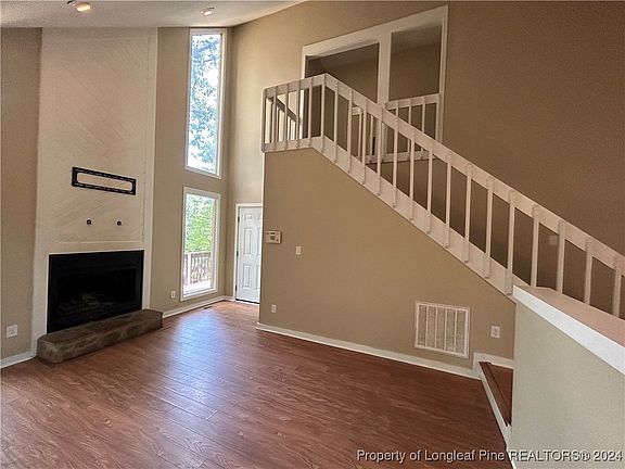 Nice 3 bedroom/2 bath home located in the quiet subdivision of Water's Edge. Home features an architectural style with an open concept main living area. Master suite upstairs with a study nook and 2 separate walk-in closets. Other 2 bedrooms nicely sized and located downstairs. Large front porch deck which wraps around the side of the home. Large, fenced backyard. Close to Fort Liberty, shopping and dining.