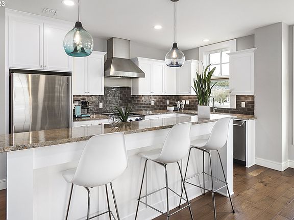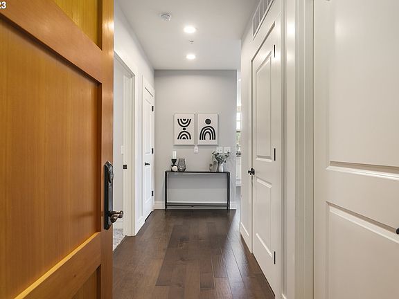 Don't miss this rare opportunity to own a beautiful 3rd floor flat in the coveted 555 Condo building. This gorgeous 2 bedroom, 2.1 bath condo offers lovely views of Mt. Hood, vaulted ceilings, wood floors, a gourmet kitchen, and amazing light-filled spaces. The friendly community provides a secure building along with the amenity-rich First Addition neighborhood with nearby restaurants, shops, and services. The primary bedroom has a large walk-in closet and bath with a soak tub and balcony.
