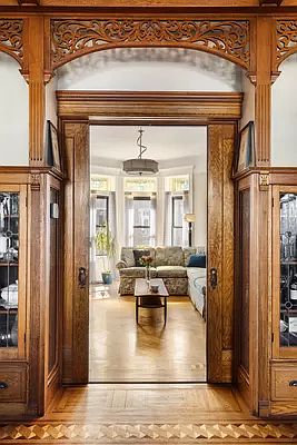 OPEN HOUSES BY APPOINTMENT ONLY - CONTACT LISTING AGENT TO SCHEDULE! Ideally located on one of the most coveted blocks in Bay Ridge, this renovated barrel-front home is an exceptional find that seamlessly blends rich pre-war features with modern upgrades. South-facing and flooded with natural light throughout, this gem has stunning original details: inlaid parquet floors; impeccable woodwork; pier mirror; pocket doors; coffered ceiling; built-in cabinetry; textured wallpaper; fretwork; wainscoting; ceiling, floor, window, and picture molding; and stained glass windows, among others. The extensive renovation includes: central A/C and heat, gut renovated kitchen and baths, new rear windows, and recently updated mechanicals and roof. The expansive parlor level is truly the centerpiece of the home. With its high ceilings and bay windows, the living area is a sunswept sanctuary that leads to a dramatic dining room highlighted by gorgeous preserved details. A completely redone open chef's kitchen anchors the space. It features radiant heating, abundant storage space and honed granite countertops, large island, stainless KitchenAid appliances, and wine fridge. A convenient powder room can also be found on this floor. Integrating indoor/outdoor living, sliding doors in the kitchen open to a garden oasis with deck, dining and lounging areas surrounded by established flowering trees, shrubs and perennials -- just in time for long sunshine-filled days. The bright and airy upper level is lit by a stained glass skylight and has 3-4 bedrooms. The primary bedroom spans the width of the house, includes a separate sitting/office area as well as a walk-in closet, and has bay windows and treetop views. The fully-renovated spa-like bathroom features modern tiles, large walk-in shower with rainfall head, ample storage and its own skylight. There are two additional bedrooms on this floor -- both light and quiet overlooking the rear garden -- including a large second bedroom accented by an original exposed brick wall. With its own private entrance, the finished basement has abundant storage space and a laundry area as well as a recreation room that's ideal as a home office, media room or play space with original tin ceilings, full bath and mini kitchenette. Also located on this level, the mechanicals have been updated and are in excellent condition. With an exceptionally convenient location, the home is located on an idyllic tree-lined street, only a couple blocks from the nearest subway, and minutes to vibrant greenspaces, waterfront parks and promenade, a wealth of local shops, restaurants, and commuter ferry.