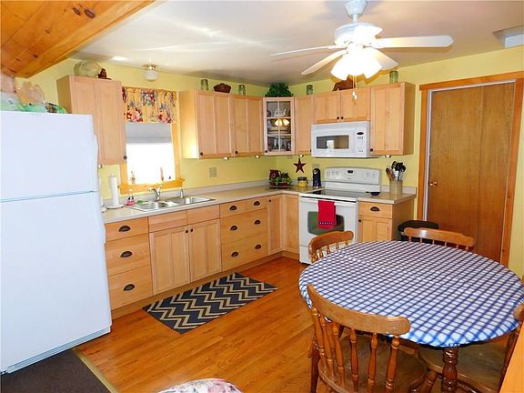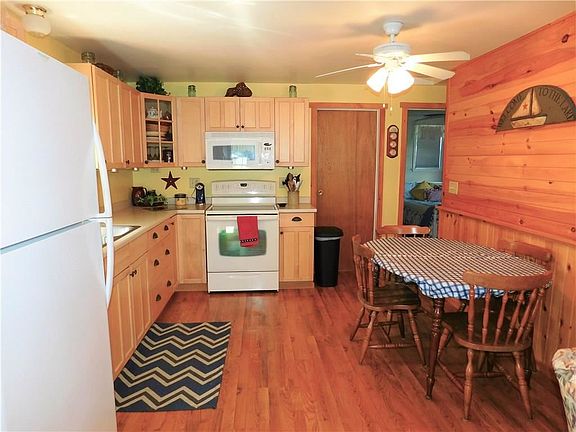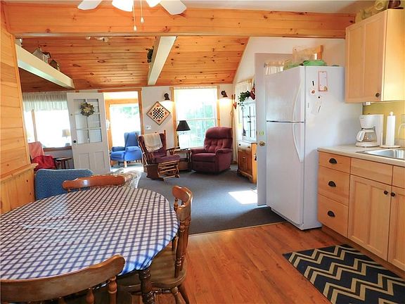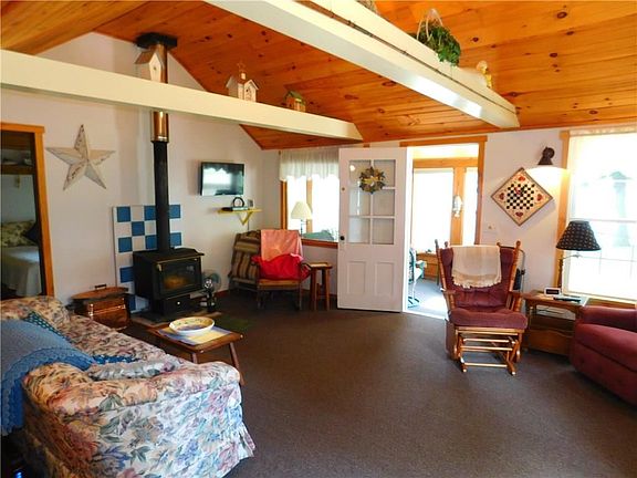 Affordable lake front living. Fully insulated home currently heated with woodstove. Three bedrooms, one bath, kitchen, living room and sunny porch. Easy to make year-round by adding furnace or electric heat. Excellent, level lot and great beach for swimming. Dock, boat and hoist included! Parking for 4+ cars plus more along private road. Over 400' from 54a on no traffic, private road. Quiet cove within the sandbar. 5 mph zone! All appliances and some furnishings included. Seller willing to help winterize home and boat.