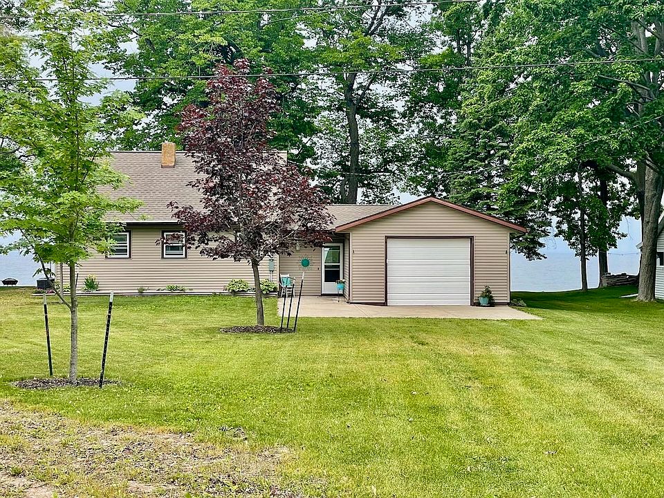 Enjoy breathtaking sunsets & endless waterfront fun at this charming 1.5 story cottage-style home! Offering 3–4 bedrooms & 1.5 baths, this inviting retreat blends cozy character with modern updates, including a stylish tile backsplash in the crisp white kitchen. Unwind on the spacious deck, take in the views, or dive into your favorite water sports. Whether you're relaxing inside or out, this is the perfect place to make memories and soak up cottage life. Offering an attached 1.5+ car attached garage & a full basement. To top off this great value is the 80 feet of water frontage, seawall, sand/shell beach & endless possibilities. Owners pay $250/yr for road maintenance and snow removal. Newer shared well with neighbors to the south. Seller requires 48 hours for response to an offer/s.