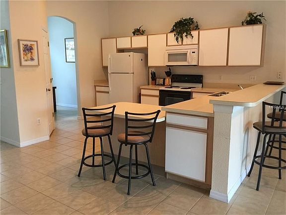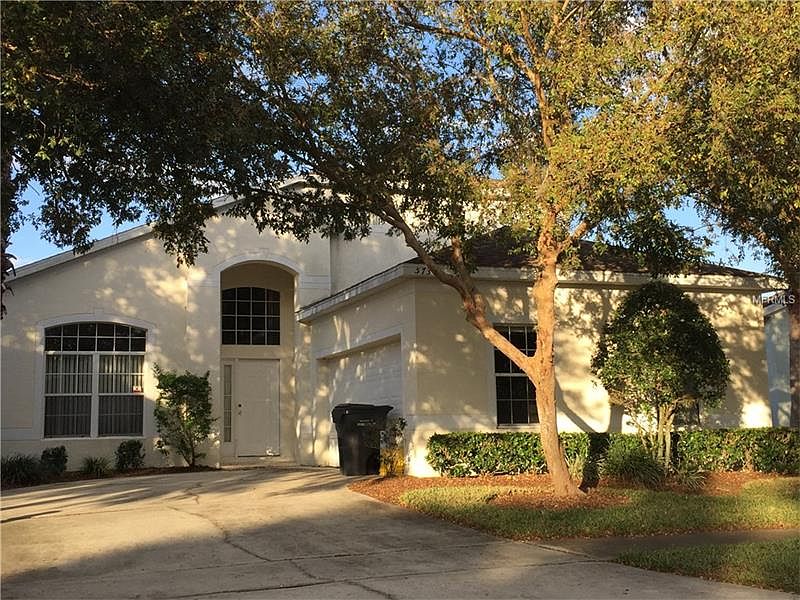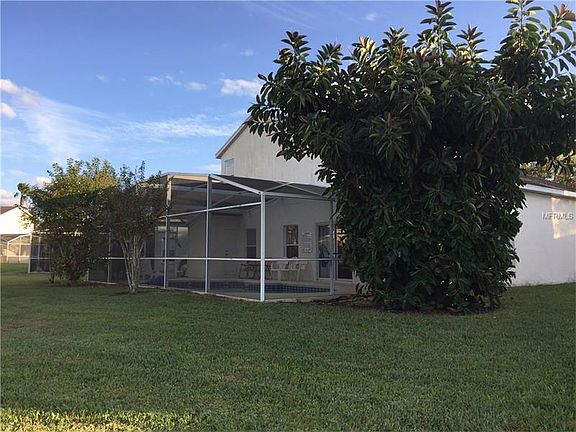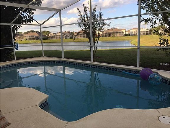 A spacious 5 BEDROOM, 3 bath POOL home on the POND, partially FURNISHED in a wonderful community of HAMPTON LAKES. The MASTER BEDROOM with ensuite is located on the FIRST FLOOR along with another bonus room/bedroom #5 and a FULL BATH WITH WALK-IN SHOWER. The other 3 bedrooms and one full bath are upstairs; HALF BATH OUTSIDE for use when utilizing the pool. The kitchen overlooks the family room making it a great place to socialize. Either entertain in the FORMAL DINING ROOM or a more laid back atmosphere in the SCREENED POOL ENCLOSURE overlooking the COMMUNITY POND. Laminate wood and tile on entire first floor; carpet on second floor. Home is available for LONG-TERM OCCUPANCY. New AC installed Spring 2016. This lovely home is close to Disney, shopping and major highways.