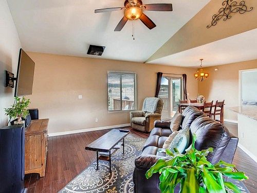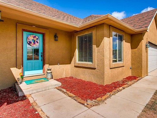 This beautifully updated Ranch located in the Colorado Mountain Estates Subdivision sits on 2 acres with surrounding mountain views. The gourmet kitchen is a chefs dream with granite countertops, solid wood cabinetry to include plate and wine rack, custom backsplash, stainless steel appliances and breakfast bar. Vaulted ceilings in the living room and Master bedroom with a walkout of the dining room to back deck. Gorgeous hardwood floors in the Living Room, Dining Room and Kitchen. Master bedroom with walkout to rear deck, adjoining 4 piece bath with raised double vanities and granite countertops. Laundry/ Mud room with slate tile flooring perfectly located off the garage entry. Low maintenance stucco exterior and Central Air conditioning. Low maintenance stucco exterior and Central Air conditioning. Garage size is 15x22. Perfect size for smaller cars, ATVs, Bikes or Large Workshop and storage. This property is the perfect place to call home.