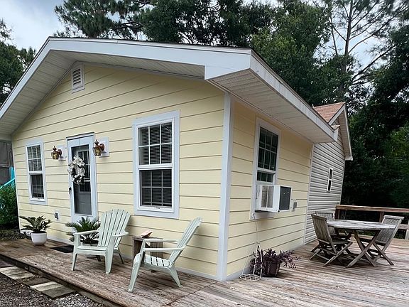 Beautiful Coastal Cottage built in 2007 with 1 bedroom/1 bath, a carport, side patio, and room for boat parking. New addition and deck was added in 2019. Notable features include: New roof, new flooring, solid wood cabinets, freshly painted, attic storage, and laundry area. Enjoy the Alabama sunsets on the patio and your pets can enjoy the private wooded fenced back yard. This property is in the safe, friendly, beach neighborhood on the shores of Perdido Bay just 5 minutes from the Lillian boat launch and only 15 minutes from the sugar white beaches of the Gulf of Mexico. Owners enjoy membership with a lifestyle full of amenities and low POA Dues of only $74/mo (includes trash pick-up). There is something for everyone: two clubhouses to host events and club meetings; year-round junior Olympic sized swimming pool with aquatic classes; tennis courts (tennis club); basketball court, fitness facility, playground, public shower area, shuffleboard court, and nature trails. You can join the community-organized activities like Bingo, card and game nights, book clubs, garden club, and enjoy group travel opportunities. If you like to relax, you can spend the day at the Spanish Cove beach area or fishing from the 500-ft pier enjoying the famous Alabama sunsets, check out the neighborhood lending library with puzzles and movies, public showers and a laundry facility is on site for your convenience. Watch the sunset while taking a stroll around this lovely golf cart community. This is Coastal Living at its finest.