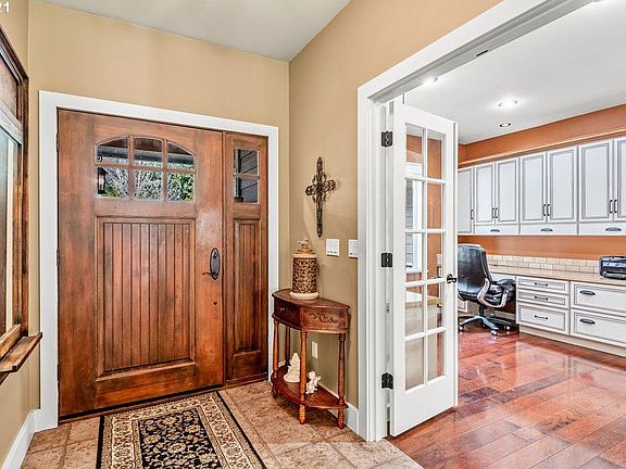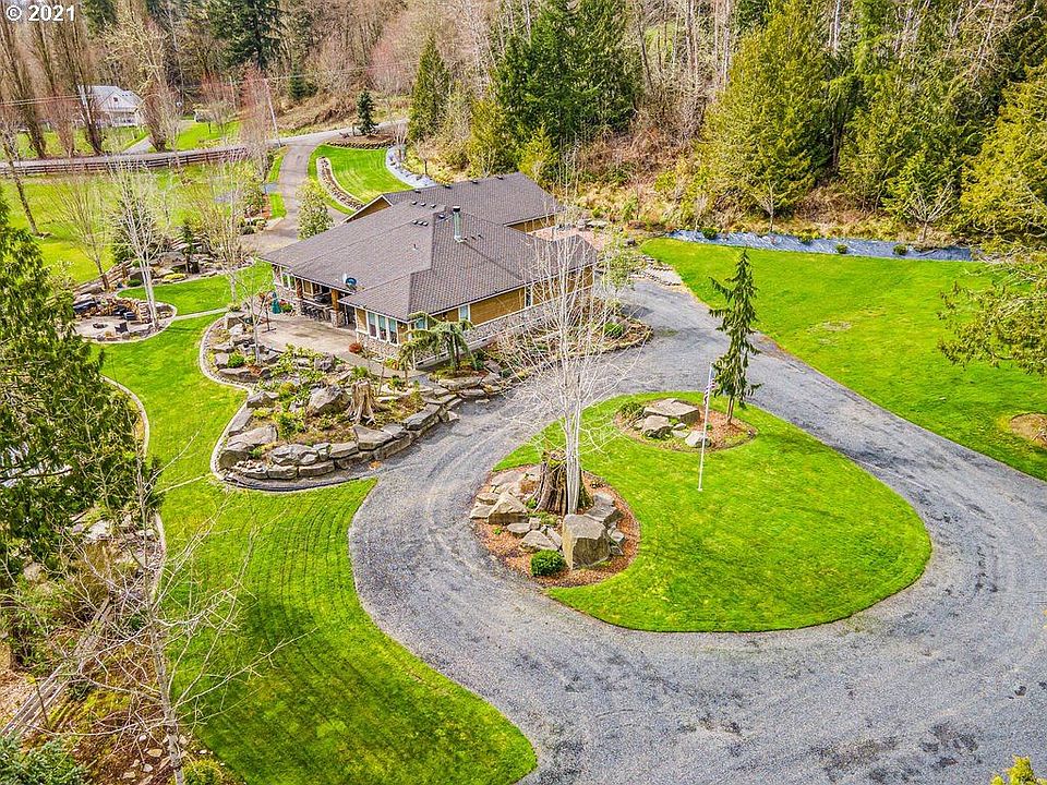 Over 9 park like acres w/ remarkable landscaping, a creek that runs through the property & the cutest covered bridge. This custom home features 2 bedrooms + den & bonus room upstairs. Open beam vaulted ceilings in spacious living room leads to covered back patio w/ BBQ area. Gourmet kitchen w/ custom cabinetry, island & pantry. Master suite w/ double closets, tile shower & jetted tub. Utility room w/ sink & additional pantry storage leads to attached garage. 2 wells on property. 10 min to I-5.