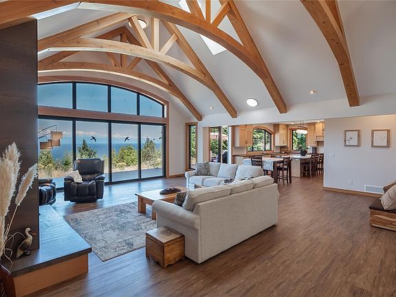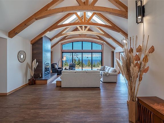 Gabriola Island Ocean Views!! Stunning 5-acre ocean view property overlooking Sandwell Provincial Park & Lock Bay! A winding driveway leads past custom rock features & a tranquil waterfall/pond to a newer 3,100+ sq.ft. single-level home filled with natural light. Enjoy spectacular views from most rooms, a chef’s kitchen with heated island, arched beams in the great room, 3 fireplaces, 3 beds, 3 baths with heated floors, & a spacious family/media room. Expansive decks capture sunrises over the ocean, and the gently sloping acreage offers space for gardens, play & future projects, as well as the opportunity to carve your path to Sandwell Park and beach below. Modern comforts include a back-up generator, well & cisterns, a powered/watered shed, and extra transformer for future garage/workshop. Embrace Gabriola’s vibrant island lifestyle, great amenities including medical and dental clinics, groceries, restaurants and more, with easy ferry, Hullo & Helijet access to Nanaimo & the mainland.