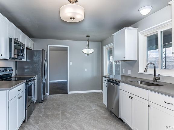 Beautifully remodeled; pristine & spacious 5 bedroom brick ranch in desirable Highland Park neighborhood: guaranteed to impress! Incredible attention to detail from top to bottom in this complete renovation. Main level features refinished hardwood flooring throughout, large living room/dining room open design with sliding doors to covered patio and private fenced courtyard. New eat-in kitchen has quartz counter tops, Whirlpool stainless steel appliances, large single bowl stainless steel sink, white Aristokraft cabinetry and tile flooring. The kitchen opens to a generous size family room/great room with direct access to the covered patio and fenced back yard. Also featured on the main level is the owners suite with its very own private new 3/4 bath as well as two additional bedrooms and a gorgeous new full bathroom. The open staircase from the living room invites you to the lower level that features a massive recreation room with egress window designed for family fun options: ping-pong, pool, media room, etc... there's even an alcove area that is perfect for study space or home office. This incredibly finished basement has 2 additional bedrooms (non conforming windows) and a conveniently located 3/4 bath. There's even a large unfinished storage room area with unlimited future possibilities. Please note the following are brand new: 30 year roof, gutters, 200 amp electrical panel, sewer line (from inside home to city tap), furnace, hot water heater and garage door opener . Your new home is close to parks, restaurants, golf courses and public transportation. Just a few miles commute to The University of Colorado Hospital and Anschutz Medical Campus, Lowry and Stapleton Communities