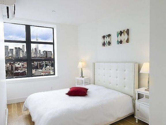 **Loft style two bedroom in Williamsburg that has double exposure for all day light** Excellent opportunity to live in a fantastic sunny two bedroom, perfect for roommates. The apartment features central A/C and Heat, hardwood floors through out the apartment. In unit W/D. The kitchen features stainless steal appliances, a full size dishwasher and upgrades fixtures. building is pre-wired for verzion fios Enjoy the spacious rooftop with full views of both Manhattan and Brooklyn. Free gym and bike storage. Full time super ; conveniently located near the Lorimer "L" train stop