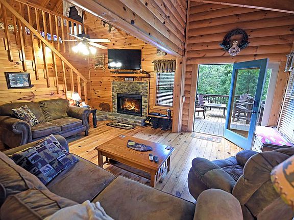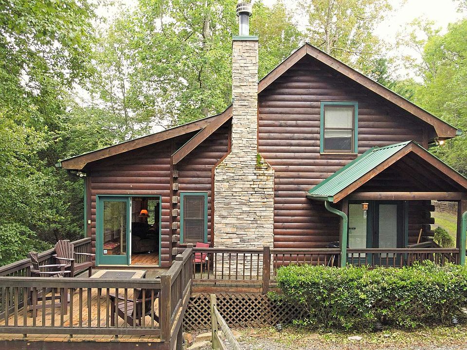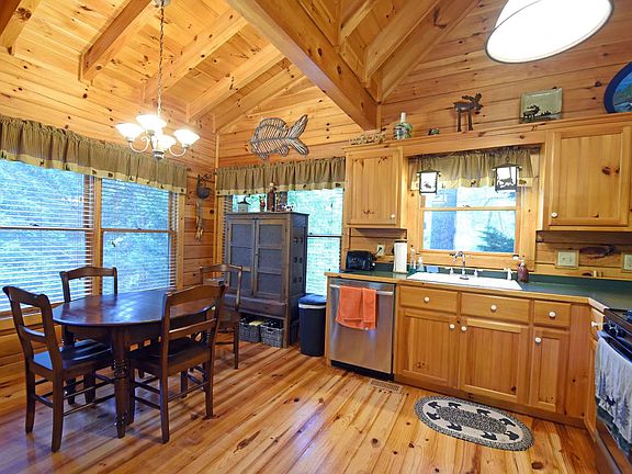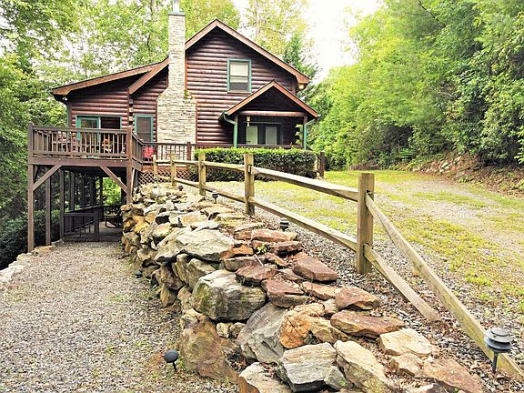 Private LOG CABIN with STREAM and POND! This perfect MOUNTAIN RETREAT has an abundance of CHARM & CHARACTER. Large enough for full-time living, a weekend get-away or a fabulous rental property investment. Entering the park-like grounds you'll cross over the sparkling creek and wind past the pond up to your rustic retreat. There are plenty of outdoor spaces to relax and enjoy nature. Inside boasts vaulted ceilings, stone fireplace (gas logs), pine floors, and pine and D-log siding walls. FULL BED & BATH & LAUNDRY on the main floor, spacious LOFTED BEDROOM or MEDIA AREA & FULL BATH (with jetted tub) & large closet upstairs, and spacious BONUS/REC ROOM plus FULL BED & BATH on the terrace level, which opens out to a cozy ROCKING CHAIR PORCH. Come enjoy all the benefits of MOUNTAIN LIVING including hiking, trout fishing, boating, breweries and vineyards/wineries and SO MUCH MORE.