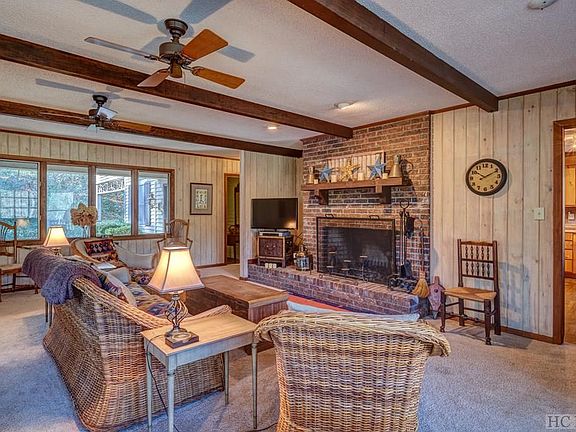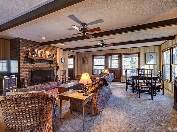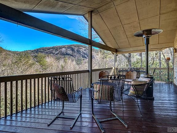 1st time on the market! Vintage Round Hill home w/'in your face' view of Bald Rock's rock face! At the end of the road for total peace & quiet, yet just a short drive to the quaint village of Cashiers located in the heart of the Blue Ridge Mountains. Round Hill Estates is one of the original neighborhoods in Sapphire Valley & membership into the Sapphire Valley Master Assoc (SVMA) is optional & membership into The Country Club of Sapphire Valley located across the street is by invitation. Big country kitchen w/wood burning fireplace looks out over deck, covered porch & view of Bald Rock. Master bedroom & guest bedroom on main level & another bedroom w/mini-kitchen & full bath over the laundry & mud room off the 1 car carport. Home needs some updating. Property adjoins Camp Merriwoode - one of the most favorite of all girls of all times! SVMA amenities include two outdoor pools + kiddie pool, one indoor pool, saunas, hot tubs, weight room, game room, video rentals, running track, kids' playground, Horsepasture River picnic grounds, board games, ski slope, tubing and zip-line areas, tennis center and golf course with driving range, Fairfield Lake access to swim, canoe, paddle boat, picnic and much more. Sign up for trips to local waterfalls and other local outings. Sapphire Valley is located on the Highlands-Cashiers plateau, a high end resort area known for world class golf, tennis, croquet and fly fishing complimented by five star dining and delightful boutique shopping.