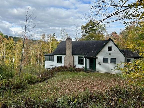 Fantastic opportunity to own an English country-style home on over 9 acres of land along a dirt road in the Town of Wardsboro. While the home is in need of renovation, it is clean, has wood floors in exceptional condition, and a first floor primary bedroom with connecting door to the main bathroom. Large living room has solid wood paneling, a handsome stone fireplace, and a wide wooden staircase to the unfinished second floor, which is waiting to be reimagined. Create a large home office to work from home, an additional bedroom, and/or easy to access storage. The rear of the home also features a unique screened "sleeping porch" with cherry floors, access to the basement below, and screen door to steps leading to the garage underneath. Wardsboro is a quiet rural town where the Vermont state vegetable, the Gilfeather turnip, was originally bred and is celebrated with a popular festival every October. The town is also situated between two major ski resorts, Mount Snow and Stratton Mountain Resort, both only a short drive away. Property being sold As-Is.