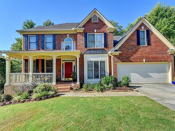 Perfect opportunity in desirable Morningview and North Gwinnett High School cluster. Brick front home w/ level driveway and large front porch. Open 2 story foyer and separate formal dining/living rooms. Wood floors through out main. Large family room with ample natural light. Kitchen has freshly painted white cabinets, granite counter tops, SS appliances and subway tile back splash. Open floor plan with view from kitchen to family room. Bedroom on main. Amazing master suite has double vanity, separate tub/shower. Huge 2 level deck with completely private backyard.