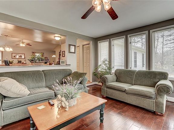 Welcome home to one level living in this beautiful ranch style home with a gated entry. This well maintained 3 BDRM, 2 BTH home offers a spacious open floor plan. Huge eat-in kitchen with oak cabinetry, stainless appliances, tile backsplash and a breakfast bar that is open to the sunroom. Living room features a gas fireplace, vaulted ceiling and new hardwood flooring. You will love the gorgeous updated tiled bathrooms that were recently completed. The sunroom offers additional gathering space or the perfect place to relax and unwind. Perfectly set on a 2.1 acre lot with a paved driveway, a 3 car garage with a lean-to, 2 car garage and a shed. Covered front and side porches, and a back deck that connects to the large screen porch with hot tub that is perfect for entertaining. No HOA's! This home has it all and is a must see!