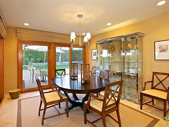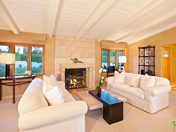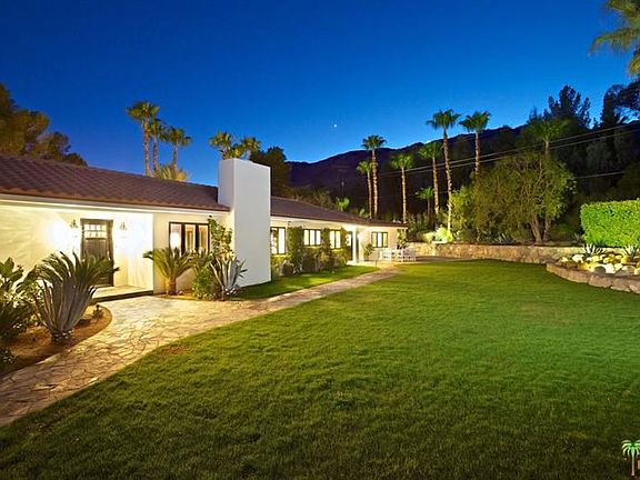 SELLER SAYS MAKE OFFER! Warm and inviting with a contemporary flair, this ageless & hidden gem is situated on approx. 1/2 acre with dramatic San Jacinto Mountain views! Elegantly equipped to the very last detail,fully furnished w/ high vaulted, beamed ceiling and walls of window in the sunlit living room, blending genuine warmth & updated, contemporary appointments. Master Suite with sitting area features a remodeled Master Bath with separate shower stall. 3 inviting guest bedrooms with lots of natural light. The resort style private backyard offers ideal mountain and palm views with a sunken fruit orchard. Several inviting outdoor sitting areas, covered patio, south facing pool. On end of a cul-de-sac with ultimate privacy & no thru traffic! Room to add separate guest casita. Major remodels on the street and close to restaurants and shopping.