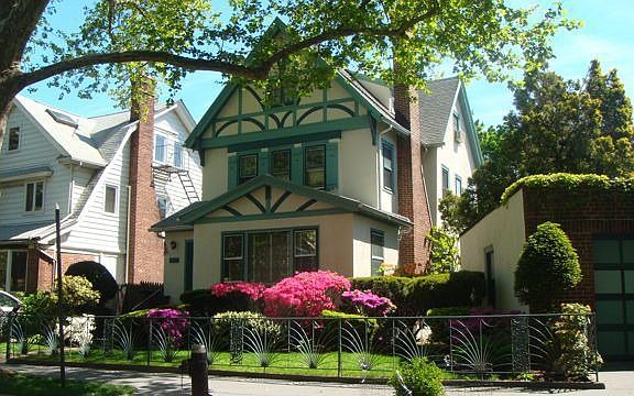 NEW TO MARKET! A beautifully landscaped front garden framed by decorative ironwork leads you to a classic Arts & Crafts front door, an inviting entrance to this lovely Ditmas Park home. Built in 1917, this 3-story Tudor has been lovingly maintained and home to only 3 owners. Walls of windows on all 4 sides bathe every room in natural light. The 1st floor features an expansive living room with arched entryways and built-in wall units and warmed by a wood-burning fireplace. A formal dining room with coffered ceilings is perfect for any sized dinner party. Beyond are a cozy sitting room, a roomy kitchen with lots of cabinets, and a full bath with steam shower. The upper two floors host 5 bedrooms with a full bath on each level. 7ft ceilings in the basement offer the option of additional living space, as well as provide copious amounts of storage. Fruit-bearing pear and fig trees ornament a very private rear garden: a tranquil setting for outdoor dining and relaxation. Oak and patterned flooring, wainscoting, cedar closets, and a skylight all add to the appeal of this special home. The icing on the cake: a detached garage! Close to B and Q trains. If you are searching for a little bit of country in the city, this is a perfect choice. !!!