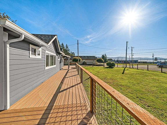 Amazing view of the ocean and bay. Completely remodeled and renovated - from floor joists to roof shingles! Custom cabinetry, SS appliances, granite and quartz counters with tile and hardwood floors. Heated towel rack in master ensuite! Central HVAC and brand new hybrid water heater. Milgard windows, doors, LED lighting, wood stove, quality cabinetry and hardware. Double lot, completely fenced, with a wrap-around, 800sqft Trex deck, one-car garage, and whole house generator with buried 500gal tank. Across from the Arts Center on almost 1/4acre. Private and yet accessible to everything on the coast. This is a truly move-in-ready house: quality furnishings and other contents are negotiable.
