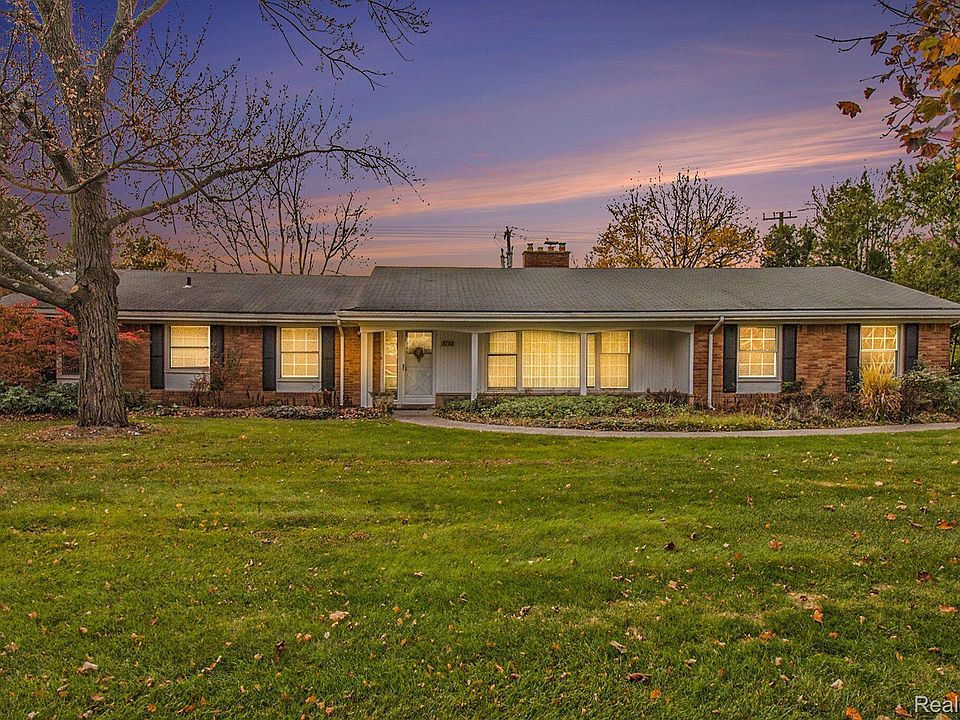 Welcome to 5730 Burnham! This sprawling ranch in Bloomfield Hills offers endless possibilities on a large 100x140 lot, located in a neighborhood with multimillion-dollar homes. The 4-bedroom, 2.5-bath home features a spacious layout, including both a living room and family room, as well as an oversized dining room with a wall-to-wall window overlooking the expansive backyard. New Anderson windows flood the home with natural light, enhancing details like the slate-floor foyer, wide hallway with a cedar closet, and a cozy white brick fireplace. The oversized garage includes storage shelving, adding convenience. The 3-seasons room at the back overlooks the tranquil yard, ideal for entertaining or unwinding. Ready for your personal touch, this home offers incredible potential in the sought-after Bloomfield Hills school district!