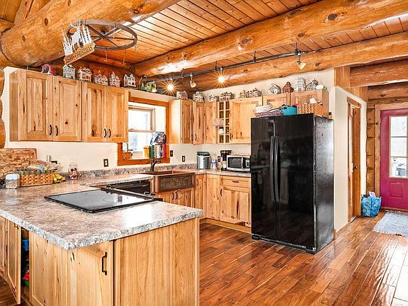 Come see this custom hand-scribed Log Home located on the Kettle River. This home has had many updates, including new kitchen cabinets, inside doors, appliances, windows, knotty alder trim, wood flooring upstairs, bathroom remodel, new front deck, and much more! Stay cozy this winter with propane forced heating or the pellet stove. Or relax in the back deck hot tub overlooking the river! Outside you'll find 2 nice sized garages, while the driveway has been recently raised with additional gravel. Situated on 5 acres and 360 feet of river frontage, this year-round home offers seclusion while only being 1.5 hours from the Twin Cities.
