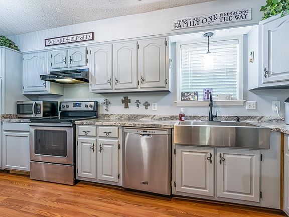 A hidden treasure in the city! Serene and private 3 bedroom 2 bath lake home is move in ready! Large corner lot & Beautiful lake views from the HUGE double deck. Walking distance to Spring Lake & large neighborhood gazebo! Spacious kitchen w/ new countertops, SS appliances & a farmhouse sink. Lots of living space including a separate laundry room, HUGE Den, & Dining Room with built in china cabinet. Large storage building/workshop, 2 decks for entertaining & a koi pond. No city taxes!