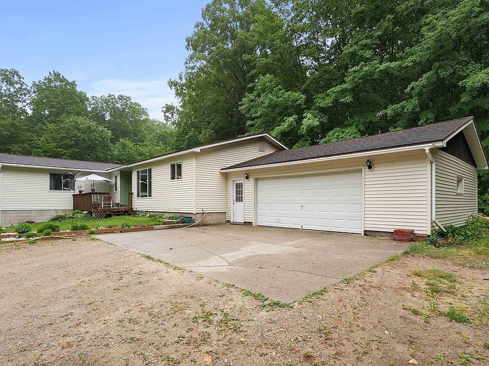 If you're looking for privacy you've found the right house! This recently renovated home offers 10 acres, 4 bedrooms, 1.5 bathrooms, main floor laundry and much more! Some updates include kitchen, flooring throughout, bathrooms and a new water heater. The walkout basement offers room to add square footage if needed. Out back you'll find a large deck with a pool that provides a peaceful setting.