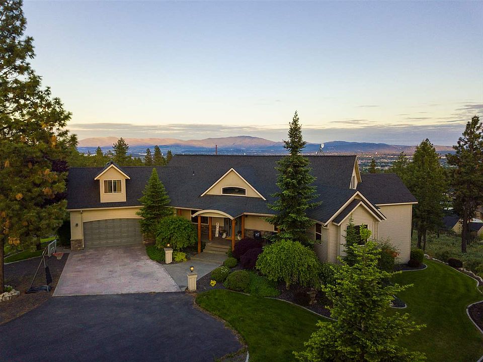 Stunning views from this custom home on almost 5 acres! Gourmet kitchen with stainless steel appliances. Vaulted ceiling in great room and large windows allow for plenty of natural light. Fabulous home for entertaining guests. 6 bedrooms. 5 baths. Second kitchen in lower level walk out basement. Professionally landscaped. Private setting adjacent to 80 acres of treed state land. Large 40 x 60 shop. School selection allows for opt in to Mead or West Valley schools.