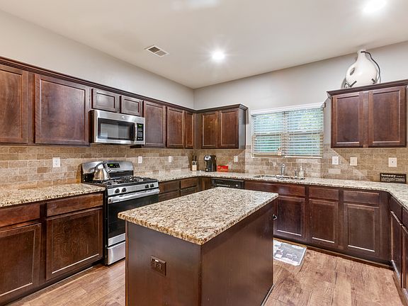 - Kitchen Features: Breakfast Bar, Eat-in Kitchen, Pantry, View to Family Room, Kitchen Island, Pantry Walk-In, Solid Surface Counters
