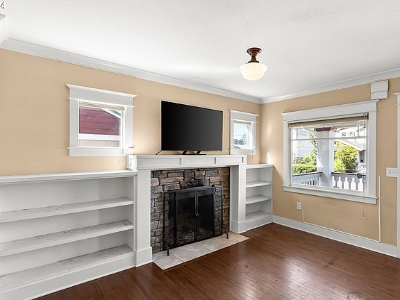 Trendy 1923 Woodstock neighborhood Bungalow, completely renovated in 2013 including all new mechanical and a full interior remodel. Everything was done: hardwood floors, quartz counters, new fixtures, etc. New roof since original remodel and fresh exterior paint just completed. Located in an excellent neighborhood with close proximity to all Woodstock amenities. Inviting front porch greets you from the street. Formal dining room and living room with wood burning fireplace as you enter. Primary bedroom on main level. 2 bedrooms and 2nd bathroom plus nice sized family room on lower level. Large detached garage with alley access for off street parking, currently being used/set up as a recreation space. Big private back yard for entertaining. 98 Bike Score!! Make this lovely home yours today! [Home Energy Score = 6. HES Report at https://rpt.greenbuildingregistry.com/hes/OR10232989]