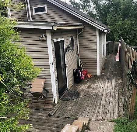 Investor's dream. This two bedroom one and a half bath home is situated in Penn Hills between Rosedale and Shannon Heights neighborhoods and can be a great investment. Oak cabinetry painted bright red, along with newer countertops, a stainless steel refrigerator, gas stove, ceramic tile flooring and sliding glass door, give this kitchen a warm look. The first floor also includes a powder room with a pedestal sink, a large living room with carpeting and a decorative fireplace and a sunroom. Den is currently set up to be a third bedroom. Upstairs is a large master bedroom, one additional bedroom and a full bathroom with newer vanity. A deck that surrounds the rear and side of the property is a nice place to sit outside and relax. This home has approximately 1,151 square feet and an unfinished basement which is currently used as the laundry room. This home is close to Verona, with shopping, restaurants, etc. and is only about a 15 minute commute from downtown Pittsburgh. Low taxes!
