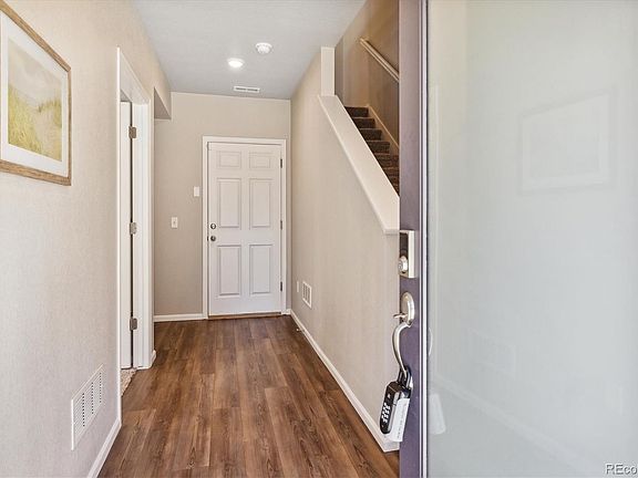 An exceptional opportunity awaits to claim ownership of the highly sought-after "Crestone" model in SaBell. This impeccable 4-bed, 4-bath, 2 Car Garage End-Unit is practically brand new, having been lightly lived in. The thoughtful design includes a Guest Ensuite on the Main Level, providing access to the front door & garage. On the first floor, upgraded luxury vinyl plank flooring sets a tone of modern elegance. The Great Room is saturated in natural light from windows on the east & south sides. The centerpiece of the Gourmet Kitchen is a spacious island with bar stool seating, complemented by Stainless Appliances, including an upgraded 5 Burner Gas Range/Self Cleaning Convection Oven, built-in Microwave with hood, Dishwasher & a 25 cubic foot Side by Side Refrigerator. Additional kitchen upgrades include Pot & Pan Drawer and Trash Pull Out, enhancing functionality. A walk-in Pantry adds convenience to the well-designed space. The Dining area provides ample room & easy access to the Covered Deck. Ascending to the next level, the Primary Ensuite awaits, boasting a generous walk-in closet, a 3/4 Bath with double vanity sinks & a glass-enclosed shower. Two secondary bedrooms at the opposite end of the hallway, offer mountain views & easy access to the Full Hall Bath. The practically located Laundry sits near the majority of the bedrooms. Prepare to be captivated as you ascend one more flight of stairs to the Rooftop Deck, an exclusive retreat offering panoramic views of the front range and breathtaking Colorado sunsets. This outdoor haven is ideal for entertaining or enjoying quiet moments with a good book. Conveniently located just 1.2 miles from the Ward Road Gold Line Light Rail Station, minutes from I-70 access to Downtown and the Mountains and a short drive to Olde Town Arvada, the SaBell community provides an ideal blend of accessibility and tranquility. This move-in-ready home is an unmissable opportunity to experience contemporary living at its finest.