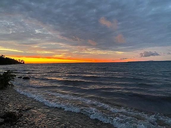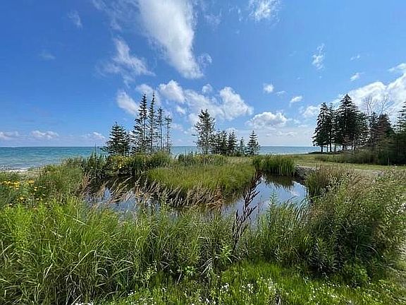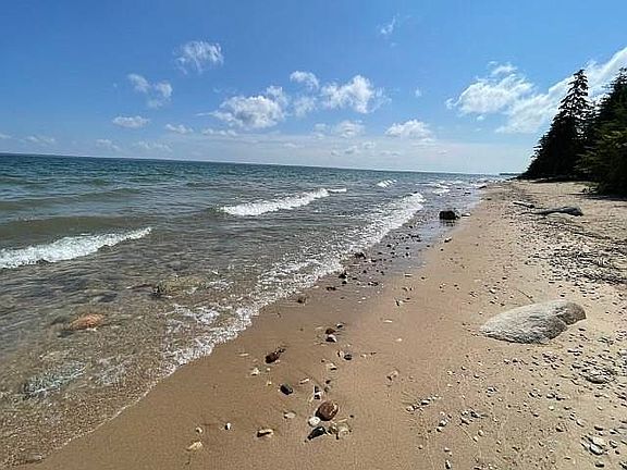 LAKE HURON, SANDY BEACH, HUGE GARAGE, ELECTRIC WITH VIEW OF MACKINAC ISLAND FOR SALE NEAR CHEBOYGAN. We also have nice pond near the beach. Just pull in and enjoy your beautiful Lake Huron lot prepped and surveyed with a ready build site. Located between Cheboygan and Mackinaw City, this location is perfect with access to I-75 nearby. The 30 x 40 pole barn is insulated and heated and built in 2017. There is also a workshop area and a storage loft. Call today for more information.