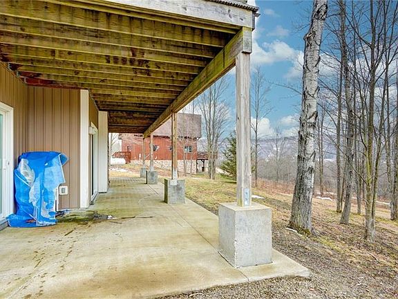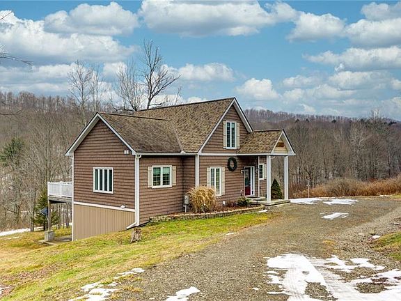 Enjoy the quiet views from this home on the outskirts of Ellicottville. Almost like brand new, this home offers an updated kitchen with stainless appliances, a large dining area to entertain. Take in all the natural light from the wall of windows off the living room. There is a master suite on this level, with a guest room that attaches to a half bath. Finished lower level is approx. 950 sq feet which adds the extra square footage that does reflect in the County tax records, bringing the total square footage to 2,400. Water and sewer is supplied by the town and billed quarterly at $100.00. The lower level offers two large bedrooms, both with exterior walkouts. The family room is a second place to entertain and walks out to a pour patio area. A full bath in this lower level along with storage and laundry room. Top grade construction with Trex decking, premier windows, and fire-rate drywall throughout. Wiring for a hot tub is already in place. Only minutes from both Ellicottville Ski resorts and the infamous Pumpkinville.