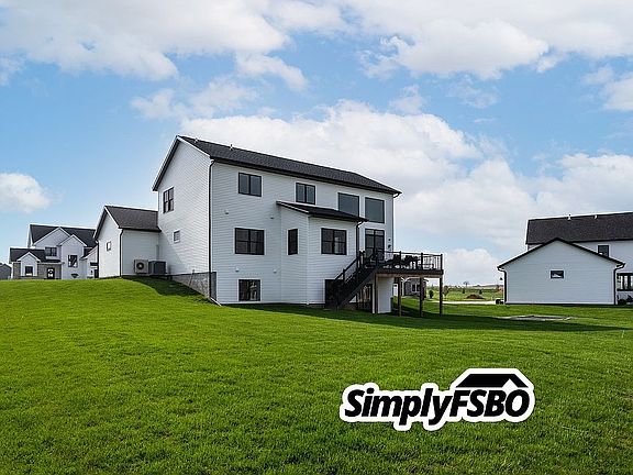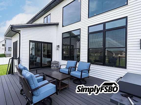 Welcome to this LIKE-NEW construction 1.5-Story home located in Century Heights, Bettendorf Iowa! With over 3,600 sqft of finished living space, 5 bedrooms, office, flex rooms, and more! You’ll love the timeless-modern clean design palette with black trimmed windows and tons of natural bright light! Impressive 2-story great room features floor to ceiling fireplace, impactful wall of black trimmed windows, custom ceiling beams, 72 inch i6 Model Big A$$ Fan (Brand Name), and open staircase with custom steel rails. Gourmet kitchen has an abundance of special touches throughout, including quartz counters, black base cabinets, white upper cabinets, pantry, textured subway tiled back-splash, custom hood, built-in desk, stainless appliances, and oversized center island! Main level primary bedroom with a gorgeous attached suite & closet. Bidets located in primary and main bathrooms with heated seats, night lights, and self-cleaning. White oak hardwood floor through main and upper levels. Finished walk-out basement with massive rec room, reading nook, exercise room, full bath, bedroom, and luxury plank throughout. Front office loaded with outlets. Termination station provides wired high speed internet through all rooms. TV high outlets in every bedroom to easily hide wires. Google nest thermostat. Quartz counters in all baths. Covered front porch, huge rear deck, and lower patio. Attached 3-car garage with mini-split unit provides BOTH heat and air conditioning. In-ground trampoline! PV schools. Seller is a licensed real estate professional in Iowa & Illinois. Agents with buyers welcome. Main Finished 1,711 SqFt Upper Finished 829 SqFt Basement Finished 1,073 SqFt Total Finished = 3,613 SqFt