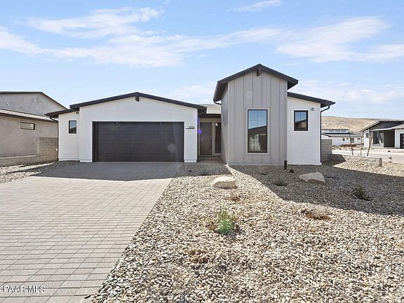 A supreme opportunity for a premium new build in the state of the art master planned Jasper community of Prescott Valley! Don't want to wait for your new home to be finished? We've got covered! This highly sought after energy efficient 604 farmhouse model sitting on an oversized corner lot offers an open split floor plan with 2 bedrooms, 2 bathrooms, 1950 sqft, a large den/office and an 2 1/2 car garage perfect for extra storage or workshop. Breathtaking curb appeal with a fresh professional landscape with low maintenance and paver driveway! Your brand new designer kitchen showcases massive island, lovely quartz countertops, soft close custom cabinets and beautiful Whirlpool stainless steel appliances.