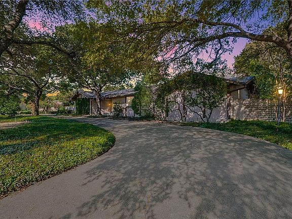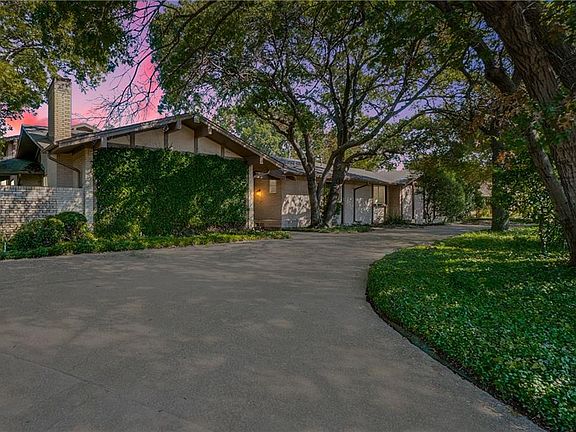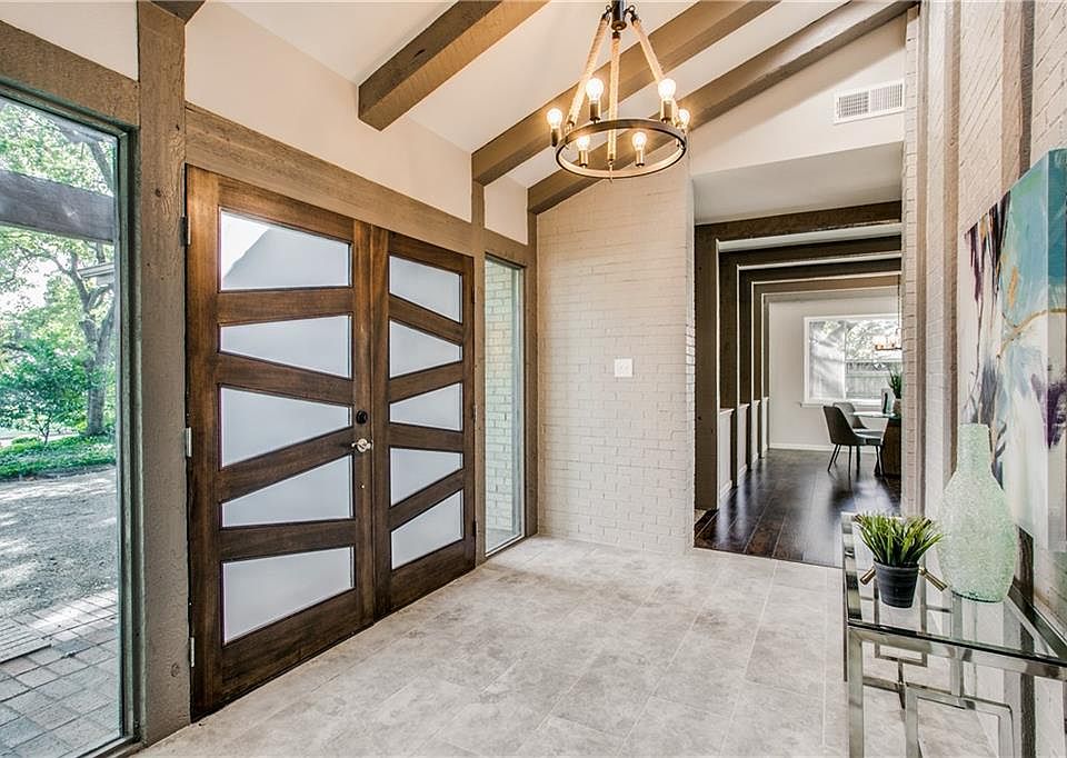 $19K PRICE DROP - Late 60's MODERN on over HALF-ACRE. Easy access to 635 & Toll. 4 bedrooms, 2 living and 2 dining areas with a bonus room that can be used as a 5th bedroom or Game Room. Natural light throughout. Master bedroom has original wood beams with a luxurious enclosed master bath. Kitchen equipped with quartz countertop, new appliances and lots of storage. Enjoy the enormous backyard. Perfect for a pool - see rendering. with mature trees and sizable covered porch. Ideal for entertaining! Circular driveway in front!