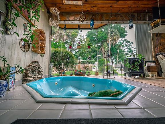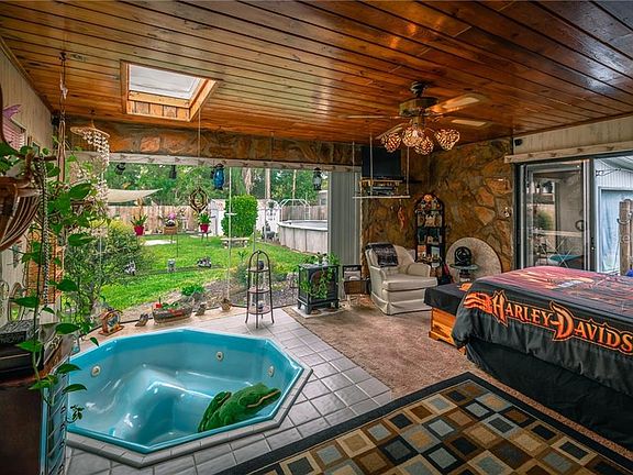 This cozy little 2 bedroom, 1 bath has more character than most bigger houses. Step into your family room and pool table, then just a step up to your open kitchen and living room. Then mosey back to your master bedroom and relax in your whirlpool tub and enjoy your spectacular view of your tropical back yard. The pool needs a liner to complete this slice of paradise. The roof was done in 2018. Home equipped with a Generac generator that runs the entire house including the back up A/Cs. Generator and stove powered by propane. This home is being sold in conjunction with the lot next door at 7201 Washington St (MLS# U8117386), that has 3 income producing rentals. Currently vacant to sell but have rented recently.