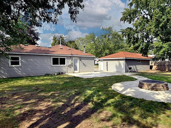 Sharp and cute 3Br, 1 Bath Rambler on Grade with slightly oversized garage. Asphalt Driveway, Large Concrete Patio with additional smokeless gas fire pit area on Large flat site with usable chain linked fenced rear yard. Updates along the way with newer windows, gas furnace 2010, central air 2020. Large open rooms and floor plan with main floor laundry area- Washer and dryer included. Easy access and actually quite location. Possible new roof coming. Needs to be confirmed.